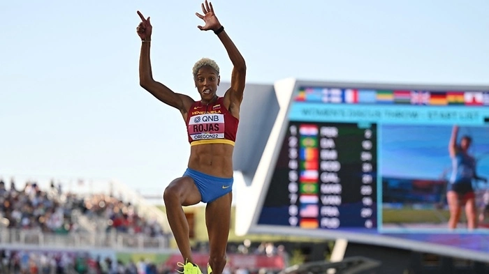 Hochspringer Mutaz Essa Barshim aus Katar und Dreispringerin Yulimar Rojas aus Venezuela haben am Montag bei den Leichtathletik-Weltmeisterschaften in Eugene (USA) ihre jeweils dritte WM-Goldmedaille gewonnen. Den Siebenkampf sicherte sich die Belgierin Nafissatou Thiam, die 1.500 m die Kenianerin Faith Kipyegon. Erstmals in Oregon im Medaillenspiegel schrieb die Ukraine an, im Hochsprung eroberte Andrej Prozenko Bronze.