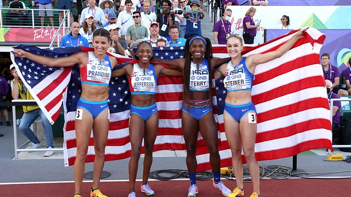 Das 4 x 100-m-Staffelrennen der Frauen bei den Leichtathletik-Weltmeisterschaften in Eugene hat einen Ausgang ganz nach dem Geschmack des euphorischen US-Publikums in Eugene (Oregon) genommen. Die US-Amerikanerinnen setzten sich in 41,14 Sek. vor den favorisierten Jamaikanerinnen (41,18) und Deutschland (42,03) durch. Bei den Männern mussten sich die Gastgeber mit Silber (37,55) hinter Kanada (37,48/Jahresweltbestzeit) und vor Großbritannien (37,83) begnügen.