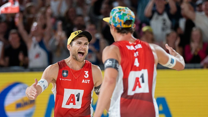 Österreichs Beach-Volleyball ist erstmals mit zwei Duos in einem EM-Viertelfinale vertreten. Julian Hörl/Alexander Horst mit einem 2:1 (-18,18,10) gegen Kusti Nölvak/Mart Tiisaar und Robin Seidl/Philipp Waller mit einem 2:1 (16,-10,10) gegen die Niederländer Alexander Brouwer/Robert Meeuwsen gewannen am Freitag in München jeweils nicht ganz erwartet ihre Achtelfinali. Hörl/Horst besiegten das Nr.-5-Paar, Seidl/Waller mit den Ex-Weltmeistern sogar die Nummer zwei des Turniers.