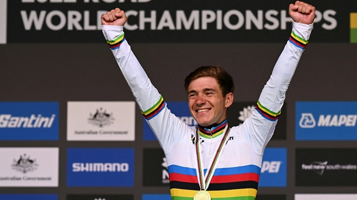 Remco Evenepoel schlug die Hände vor sein Gesicht, schüttelte den Kopf und rollte nach einer Triumphfahrt jubelnd über den Zielstrich. Überschattet vom Skandal um Mitfavorit Mathieu van der Poel ist der belgische Jungstar in Down Under erstmals zum WM-Titel gestürmt. Der 22-jährige Rad-Profi holte sich nur zwei Wochen nach seinem Vuelta-Erfolg nach 266,9 Kilometern und 6:16:08 Stunden am Sonntag in Wollongong den Sieg im Straßenrennen.