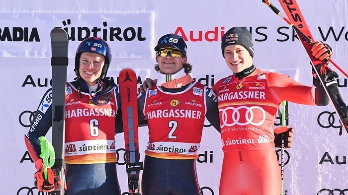 Lucas Braathen hat am Sonntag den Weltcup-Riesentorlauf in Alta Badia gewonnen. Der Norweger setzte sich nur um 2/100 Sekunden vor seinem Landsmann Henrik Kristoffersen durch, Dritter wurde der Schweizer Marco Odermatt (+0,10), der sich von Platz neun aus noch deutlich verbesserte. Der zur Halbzeit führende Zan Kranjec fiel auf Platz fünf zurück, bester Österreicher war Marco Schwarz als Sechster (+0,75).