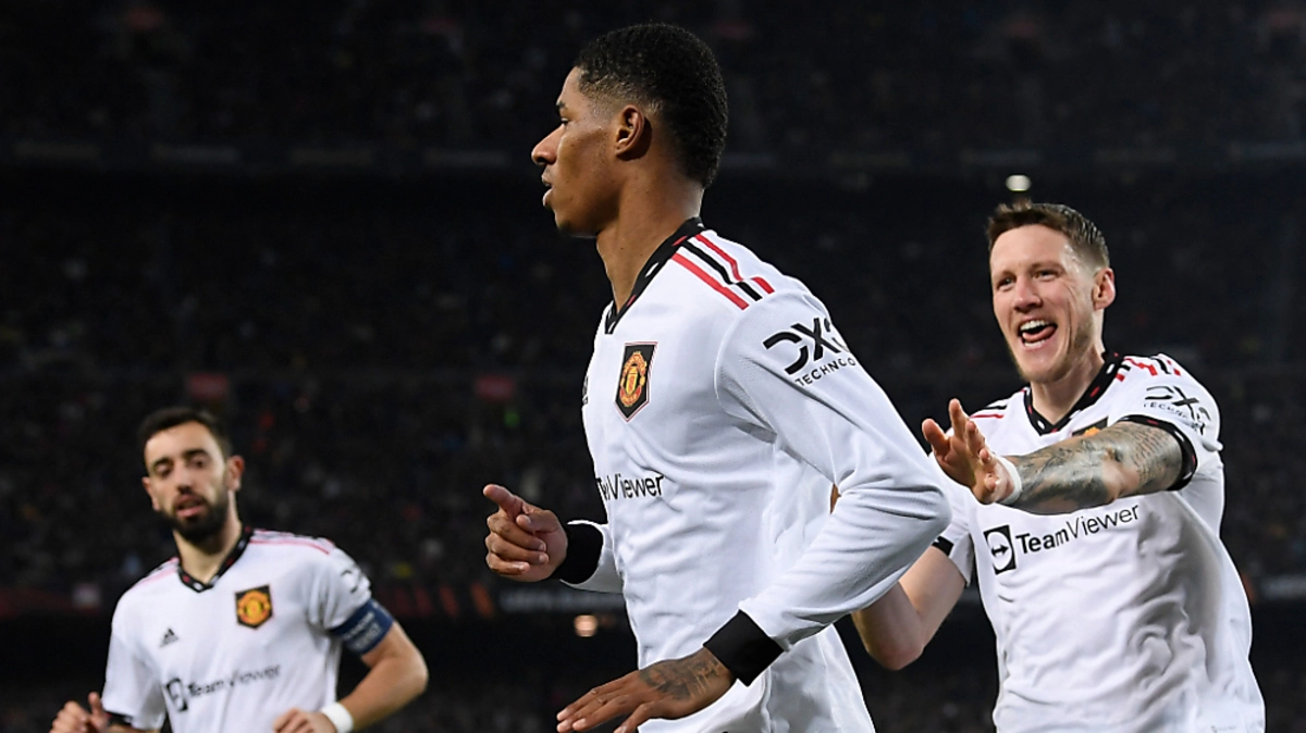 Der FC Barcelona und Manchester United haben sich in einem unterhaltsamen Hinspiel im Duell um den Aufstieg ins Europa-League-Achtelfinale mit einem 2:2 getrennt. Nach einer torlosen ersten Halbzeit brachte Marcos Alonso (50.) die Katalanen voran, die ohne den gesperrten Marcel Sabitzer angetretenen "Red Devils" drehten die Partie aber durch ein Tor von Marcus Rashford (53.) sowie ein Eigentor von Jules Kounde (59.). Barcelona gelang durch Raphinha (76.) noch der Ausgleich.