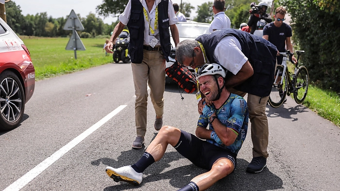 Der am Vortag knapp am Rekordsieg der Tour de France vorbeigesprintete Mark Cavendish ist am Samstag ausgeschieden. Der britische Ex-Weltmeister stürzte 64 km vor dem Ziel der 8. Etappe und musste die Radrundfahrt mit einem gebrochenen Schlüsselbein vorzeitig beenden. Der Tagessieg ging nach 200,7 km und 4:12,26 Stunden von Libourne nach Limoges im Sprint an den Dänen Mads Pedersen vor dem diesjährigen dreifachen Etappensieger Jasper Philipsen und Wout van Aert (beide BEL).