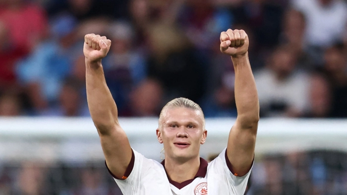 Erling Haaland hat seinen Torhunger gleich zum Start in die neue Saison der englischen Fußball-Premier-League mit einem Doppelpack gestillt. Der Stürmerstar von Manchester City erzielte im Auswärtsspiel bei Burnley am Freitag mit einer Direktabnahme den ersten Treffer (4.) und legte mit einem sehenswerten Linksschuss, der via Unterkante der Latte den Weg ins Tor fand, einen weiteren Treffer (36.) nach. Für den Schlusspunkt sorgte Rodri (75.) mit einem Abstaubertor.