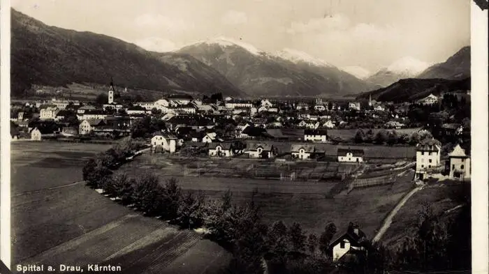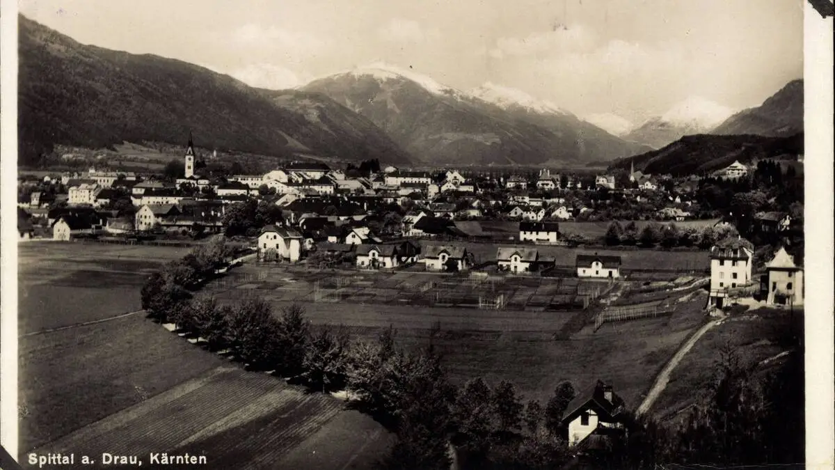 Das Ehepaar Hauptmann war gegen Ende des Zweiten Weltkriegs von Slowenien nach Österreich geflüchte. In Spittal an der Drau bauten sie sich ein neues Leben auf. Hier eine Ansicht der Statd aus dem Jahr 1935.