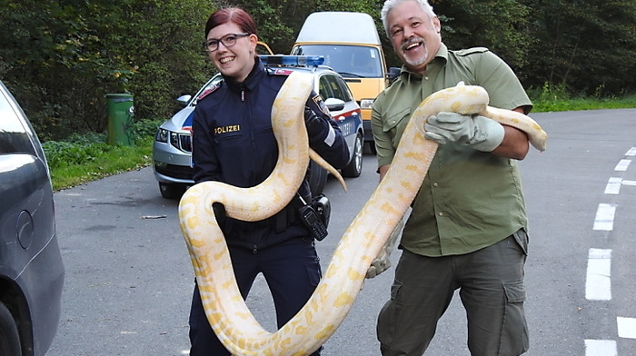 Ein Mann aus Niederösterreich hat in der Steiermark eine 4 Meter lange Python-Schlange gekauft. Während der Autofahrt nach Hause befreite sie sich aus ihrem Transport-Karton und kroch im Auto herum. Der Besitzer rief die Polizei und den Reptilien-Notdienst.