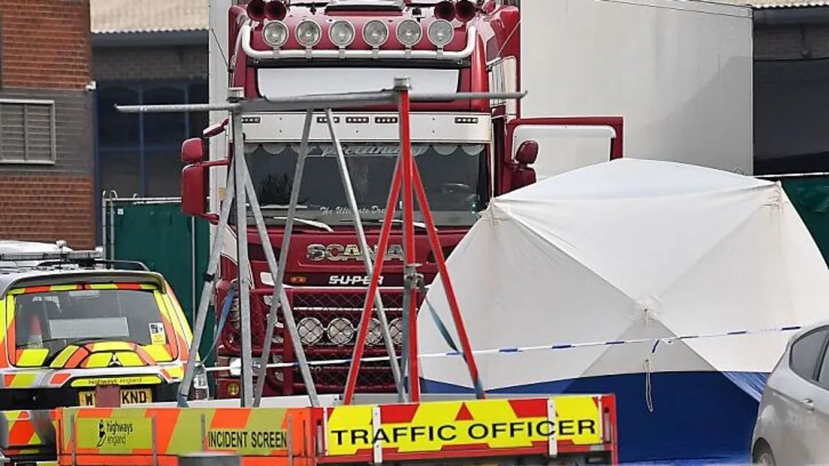In der Nähe der britischen Stadt London wurden am Mittwoch 39 Leichen in einem Lkw-Container gefunden. Dabei handelt es sich vermutlich um 38 Erwachsene und einen Jugendlichen. Der Fahrer des Lkw wurde festgenommen. Die Polizei versucht derzeit herauszufinden, wer die Toten sind. Sie glaubt, dass der Lkw aus Bulgarien kommt.