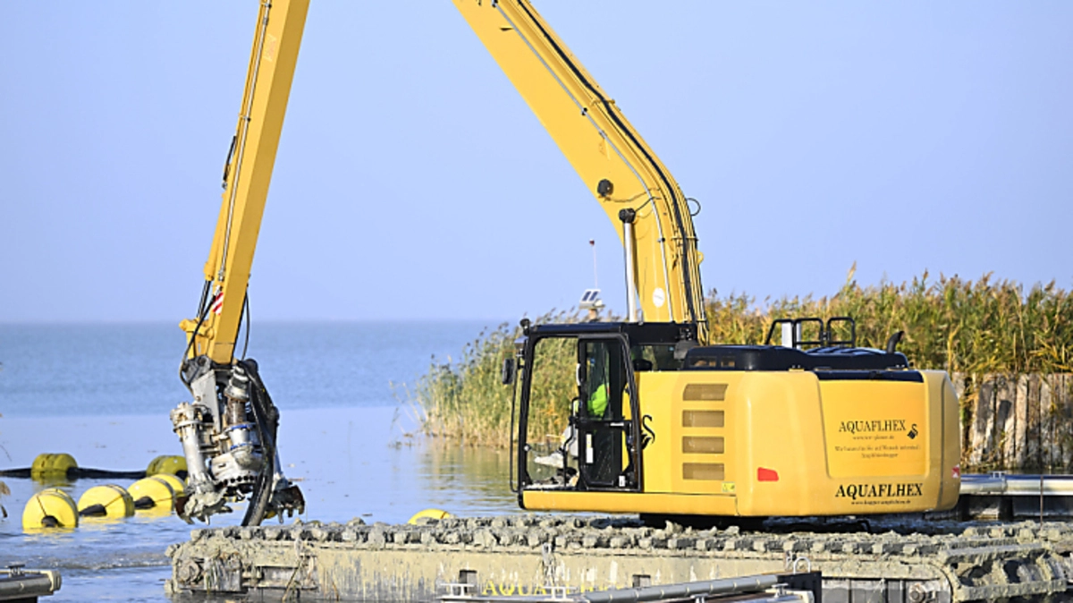 Bagger saugen Schlamm aus den Häfen am Neusiedler See