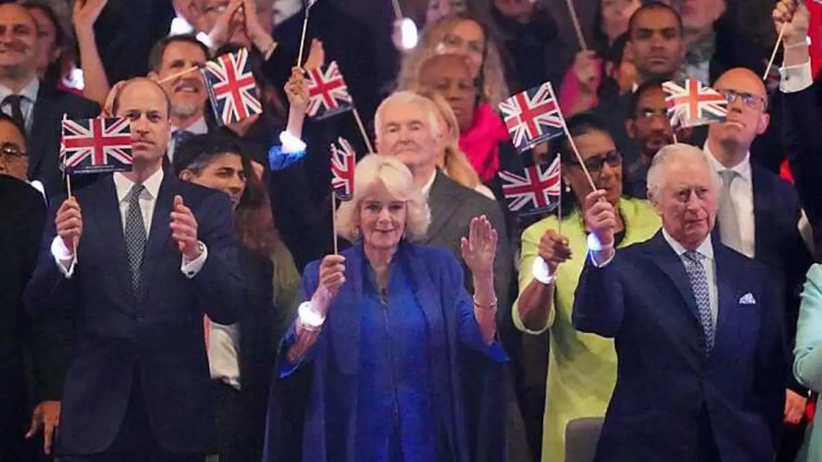 Auf Schloss Windsor in England hat am Sonntagabend ein Konzert zur Ehrung der Krönung von König Charles III. und seiner Frau Camilla stattgefunden. 20.000 Fans waren bei dem Konzert. Neben Charles und Camilla saßen auch Thronfolger Prinz William mit Ehefrau Kate und ihren gemeinsamen Kindern George und Charlotte.