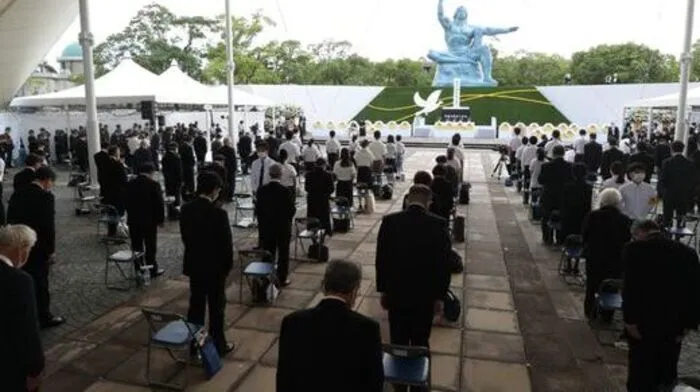 Bei der Gedenk-Feier forderte der Bürgermeister von Nagasaki, dass Atom-Waffen weltweit abgeschafft werden.