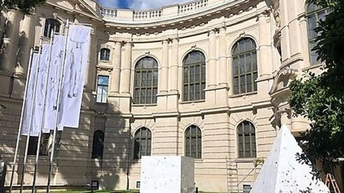 Zhanna Kadyrovas Objekte vor dem Eingang in die Neue Galerie