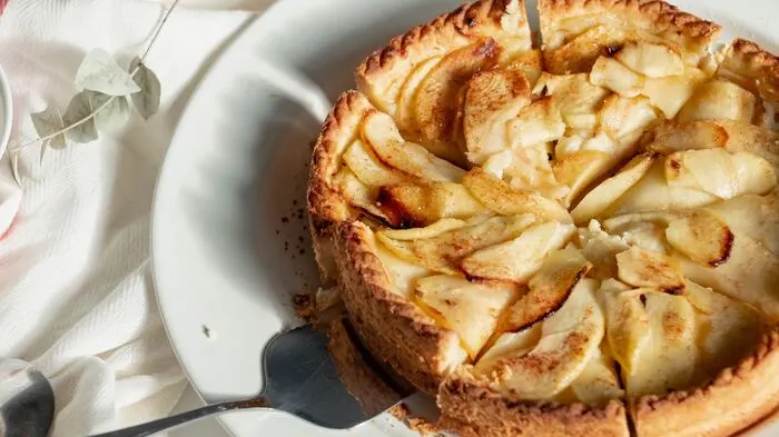 - Die Äpfel darauf verteilen. Die Vanillecreme darübergießen. Bei 220 Grad weitere 25 Minuten backen.