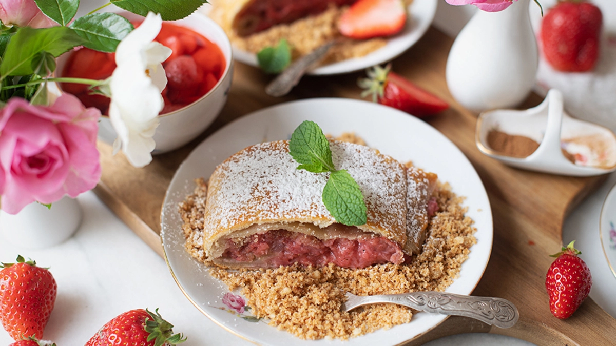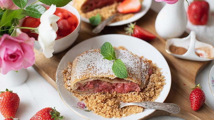 Erdbeerstrudel mit Zimt Bröseln