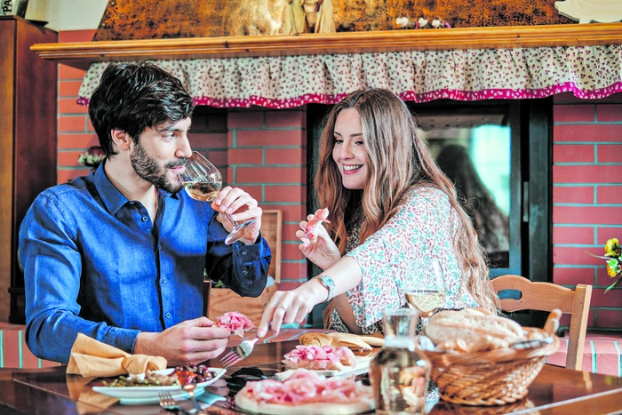 Und wenn nach der Weinprobe der Magen knurrt, dann ist das nächste Gasthaus nie weit entfernt. Praktisch in jedem kleinen Ort findet man eine Osteria oder Trattoria, in die man einkehren und wo man sich verwöhnen lassen kann – stilecht mit von der Decke baumelnden Schinkenkeulen, versteht sich.