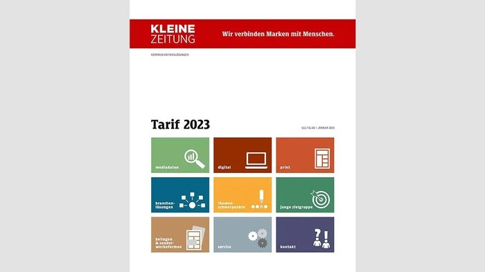 Das gesamte Produktportfolio der Kleinen Zeitung sowie alle Tarife finden Sie im Tarifbuch 2023.