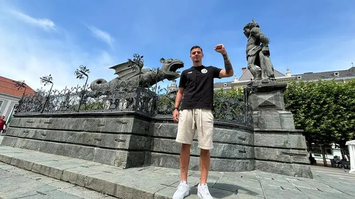 „Was spuckt denn dieser Drache da?“ - Neugierig steht David Toshevski (23) vor dem Lindwurmbrunnen und lässt sich Klagenfurter Stadtgeschichte erklären, ehe er selbst als Herkules posiert Der junge Stürmer fühlt sich in seiner neuen Fußballer-Heimat sichtlich wohl und nutzt jede Chance, dazuzulernen. Wie auch auf dem Platz. Denn der schnelle „Zehner“ von Austria Klagenfurt hat schon achtmal in den Vorbereitungsspielen eingenetzt, geht als Hoffnungsträger der Violetten in die neue Saison. Ob er auch heute Abend trifft? Dann startet der Pflichtspielkalender mit dem ÖFB Cup-Gastspiel bei Regionalliga-Aufsteiger Gloggnitz (19 Uhr).