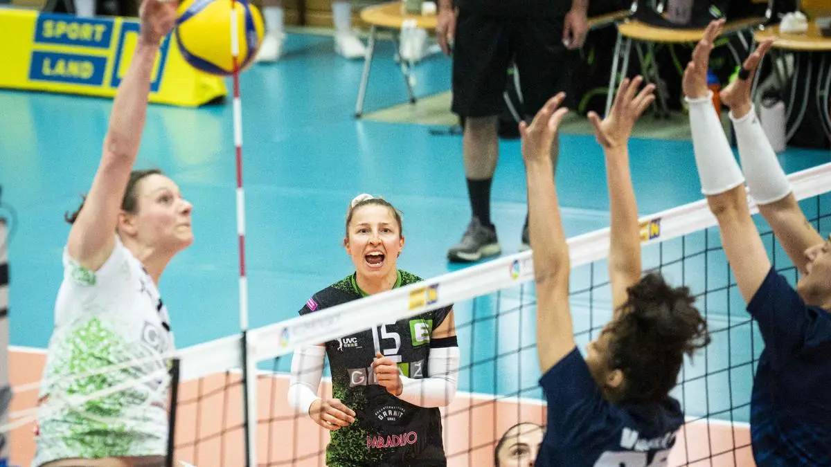 Immer wieder bissen sich die Grazerinnen am Netz und dem Block von Sokol/Post die Zähne aus. Der Rekordmeister kaufte den Grazerinnen im ersten Spiel der Finalserie („Best of Five“) den Schneid ab. „Wir sind nicht ins Spiel gekommen und es hat Elan gefehlt“, sagte UVC-Angreiferin Ursula Erhart nach der 1:3-Niederlage, „es gibt Potenzial nach oben.“ Sie fordert für die kommende Partie mehr Elan, um dem Gegner das Leben schwer zu machen. Der lieferte, angeführt von einer auf dem Feld herausstechenden Srna Vardjan, eine durchwegs solide Partie mit viel Druck ab. Die Außenangreiferin verdiente sich ihre Sporen in den starken Ligen Europas (Deutschland, Italien, Polen) und ließ immer wieder ihre Klasse aufblitzen. Nach einer vierjährigen Pause samt Berufsausbildung greift die Mutter nun mit ihrem Nachwuchsverein nach dem Titel. Wenn es die Grazerinnen nicht zu verhindern wissen, ist es der 47. für die Damen des Klubs.