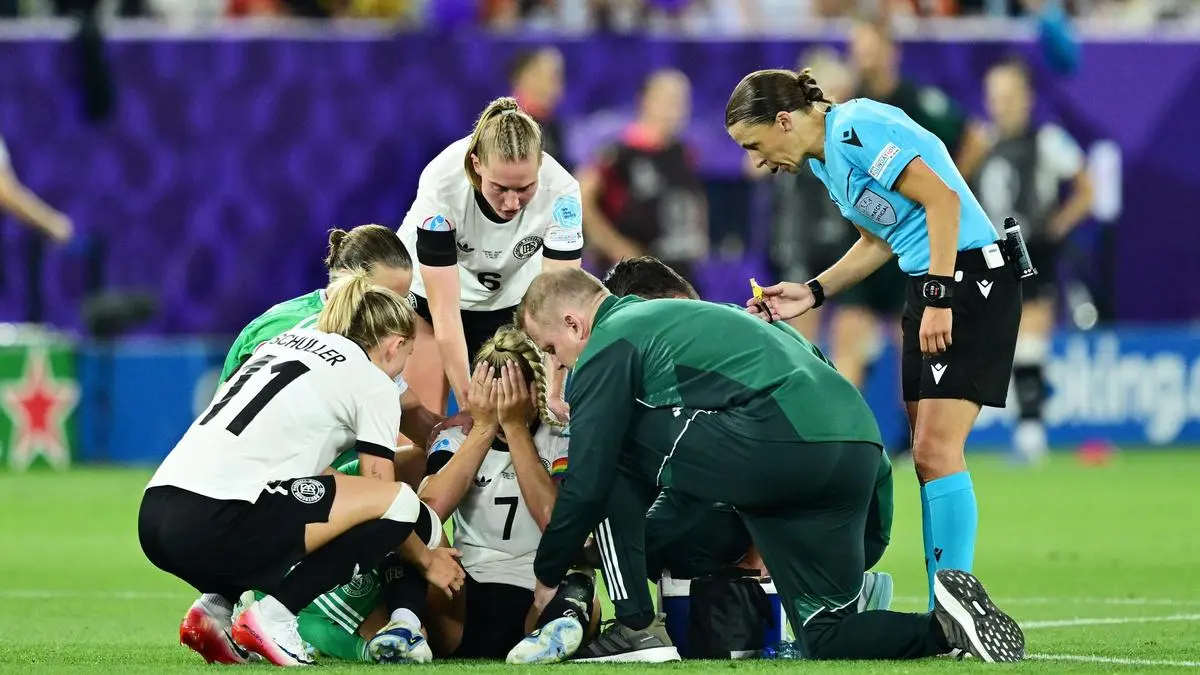 Deutschlands Jule Brand, die beim 2:0-Auftaktsieg über Polen mit Tor und Assist die Spielerin des Spiels war, sprach nach dem Schlusspfiff von einem „Schock“. Früh in der Partie verdrehte sich DFB-Kapitänin Giulia Gwinn bei einer Rettungsaktion das Knie.