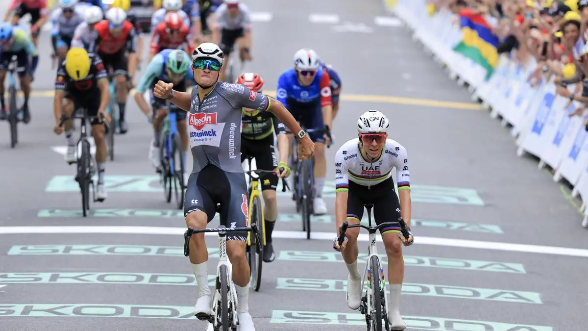 Es war ein sehr langer Sprint, den Mathieu van der Poel (Alpecin - Deceuninck) in Boulogne-sur-Mer lancierte und am Ende hielten die Beine des Niederländers der Belastung stand. Völlig entkräftet nahm „MVP“ die ersten Glückwünsche entgegen und er hatte doppelten Grund zur Freude. Es war sein zweiter Etappensieg bei der Tour de France nach 2021 und zugleich übernahm er das gelbe Trikot des Gesamtführenden von Jasper Philipsen. Sein Teamkollege gewann zwar den Sprint der zweiten Gruppe, verlor aber 31 Sekunden.