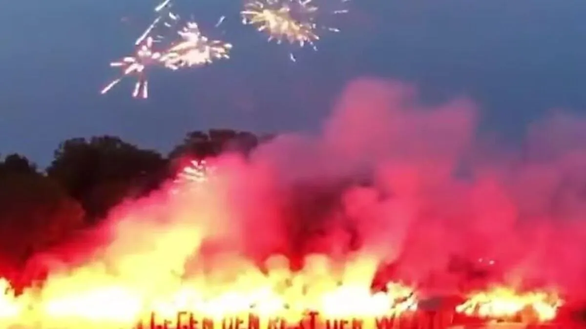 Die Fans des deutschen Zweitligisten Dynamo Dresden zündeten ein wahres Fan-Feuerwerk vor dem Spiel gegen den VFB Stuttgart ab. Vor dem Teamhotel bekam die Mannschaft eine Pyrotechnik-Show zu sehen.