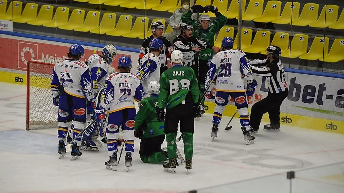 Die Schlussphase des Spiels zwischen dem VSV und Laibach hatte einen ganz fahlen Beigeschmack. Nach einem Gerangel hinter dem Tor zeigten Tadej Cimzar und Miha Zajc VSV-Verteidiger Derek Joslin "Affen-Gesten", die Aufregung nach Spielende war riesig, auch die Liga schritt sofort ein. Noch in der Nacht wurden von Offiziellen nach intensivem Videostudium der Situation in den Kabinen Statements der Beteiligten und ihrer Trainer eingeholt.