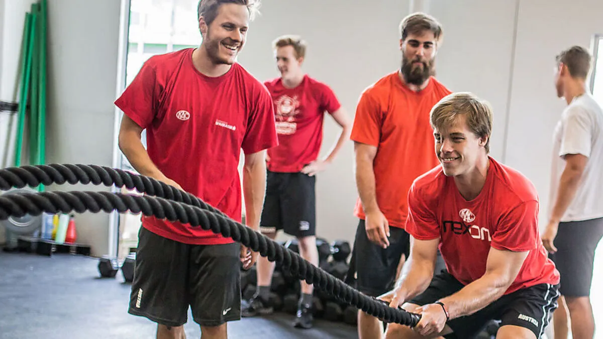 Die Rotjacken bereiten sich mit Crossfit-Training auf die Eiszeit vor. Bereits während des Trainings werden die Daten der Cracks aufgezeichnet und speisen ein Online-App.