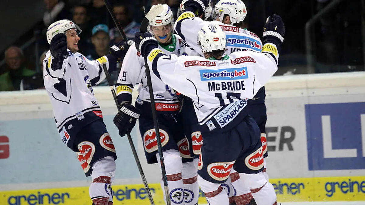 Die VSV-Cracks jubeln über einen 4:1-Heimsieg gegen Laibach