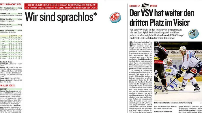 In unserer heutigen Print-Ausgabe demonstriert auch die Sportredaktion der Kleinen Zeitung ihre Sprachlosigkeit zu den jüngsten Leistungen des KAC.