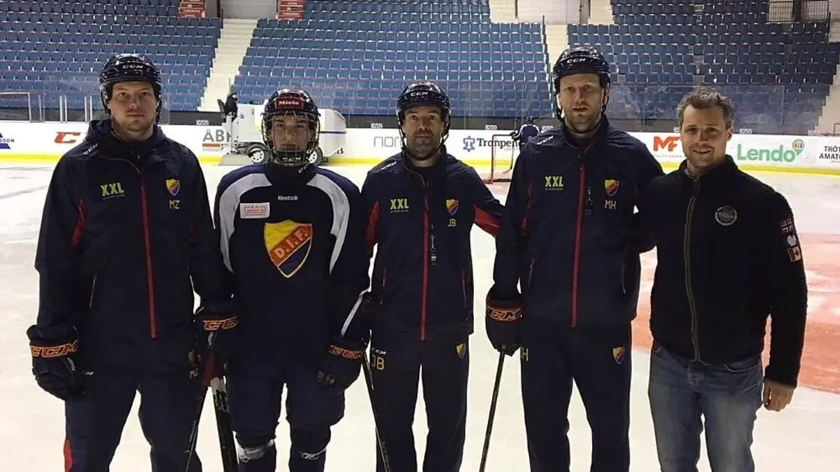 Johannes Reichel (re.) mit Nachwuchstrainern von Djurgarden Hockey