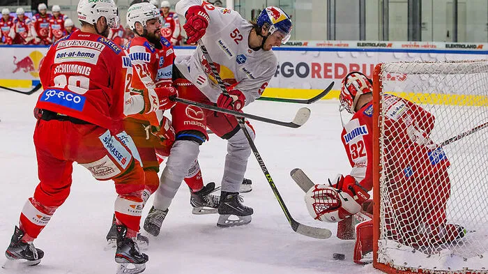 Sebastian Dahm und die KAC-Abwehr hatte in Salzburg stets viel zu tun