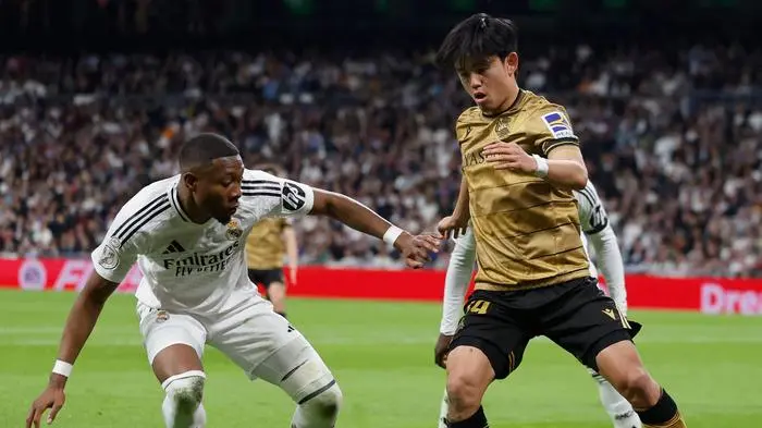 Danach bewiesen die Madrilenen Comeback-Qualitäten. Jude Bellingham stellte per Volley auf 2:3 (82.), Aurelien Tchouameni glich aus (86.). Doch Real Sociedad erzwang eine Verlängerung. Lunin segelte bei einer Freistoßflanke von Sergio Gomez daneben, Oyarzabal sprang höher als Alaba und köpfelte ein (93.).
