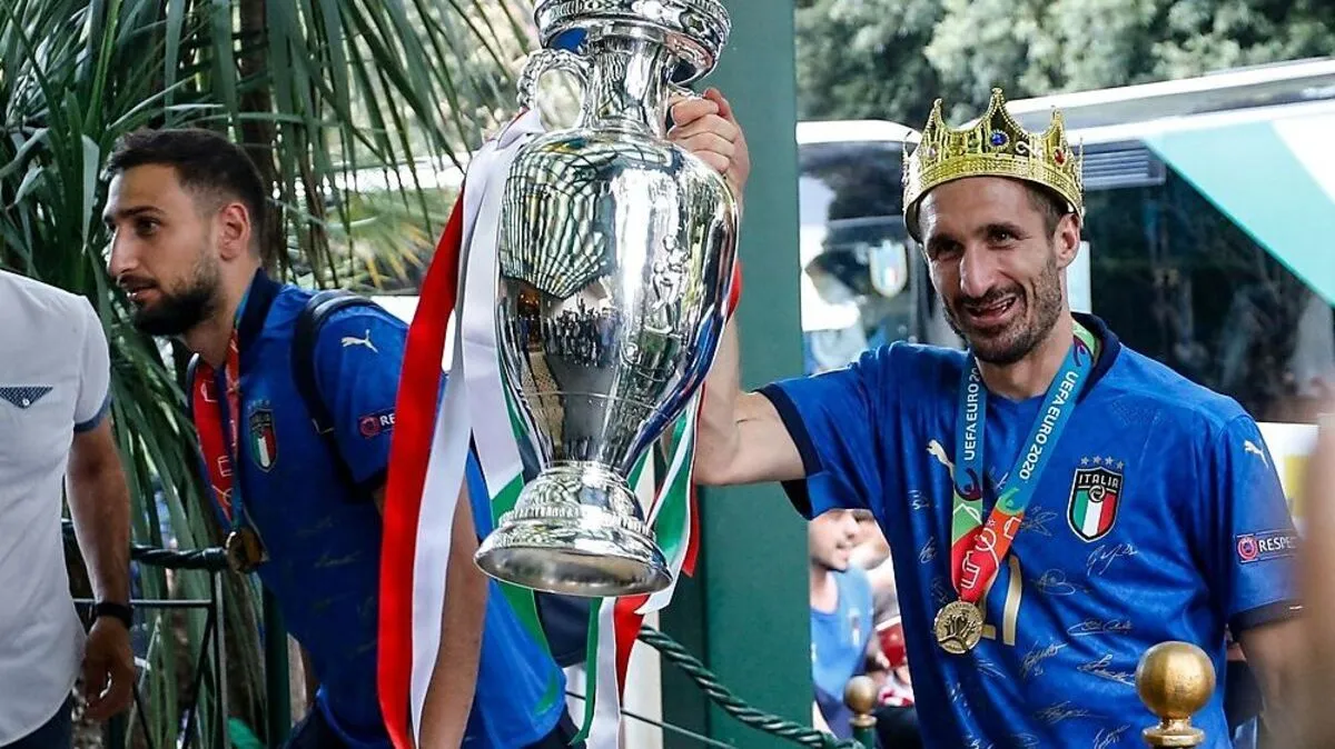 Chiellini mit dem Europameister-Pokal