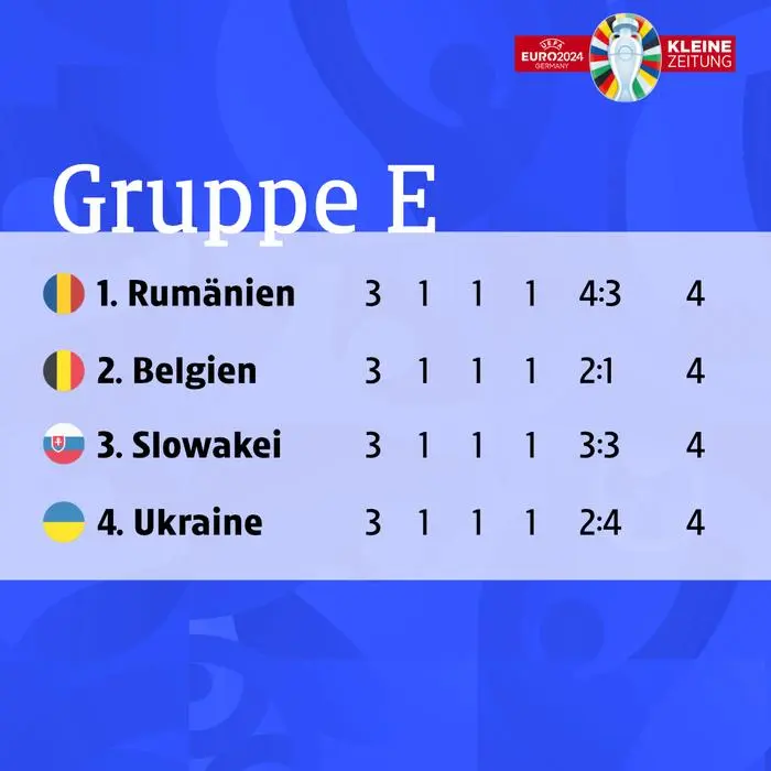 Der befürchtete Nichtangriffspakt ist ausgeblieben. Rumänien schloss die ausgeglichene Gruppe E bei der Fußball-EM nach einem 1:1 gegen die Slowakei sensationell als Gruppensieger ab. Alle vier Teams holten vier Punkte. Die erst zweite Teilnahme an einem EM-Achtelfinale nach 2000 beschert den Osteuropäern im Österreich-Turnier-Ast ein Duell mit einem Gruppendritten. Hinter Belgien (0:0 gegen Ukraine) ist auch die Slowakei als Gruppendritter weiter.
