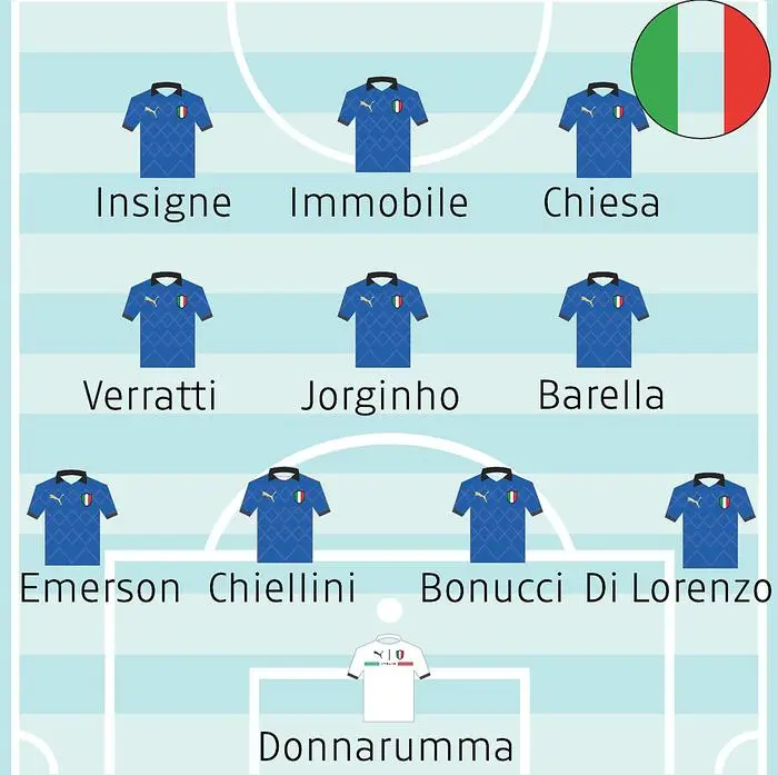 Während die Italiener auf das bewährte 4-3-3 ohne Überraschung in der Startelf setzt, kommt es bei England scheinbar zu einer Umstellung. Mit Kieran Trippier, Kyle Walker, John Stones, Harry Maguire und Luke Shaw sind nämlich fünf nominelle Verteidiger in der Startelf von Gareth Southgate. So könnten die Engländer wieder auf eine Dreier- bzw. Fünferkette umstellen.