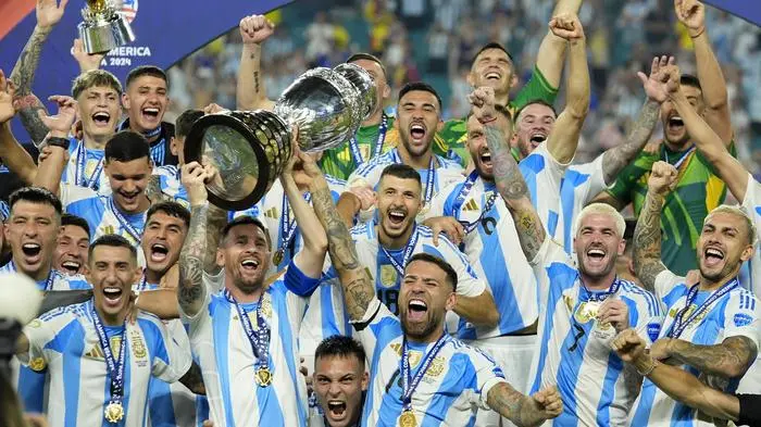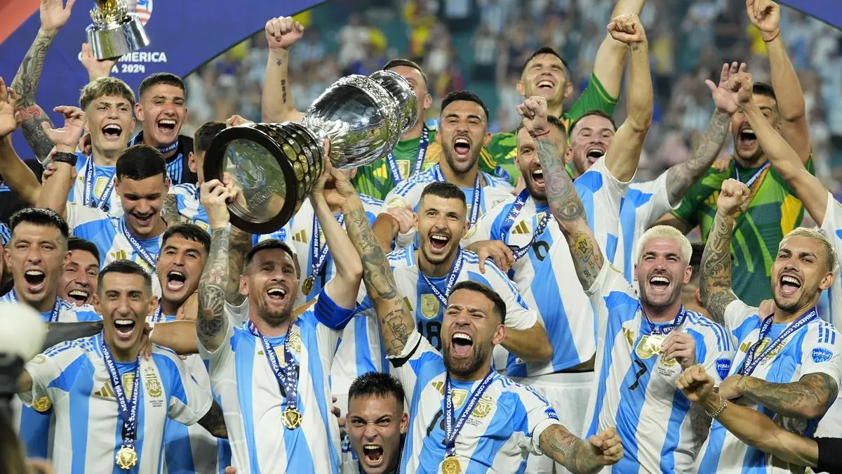 Lionel Messi hält nach dem Sieg über Kolumbien die Copa-America-Trophäe in Händen. Später soll es im Mannschaftsbus zu einem rassistischen Vorfall gekommen sein