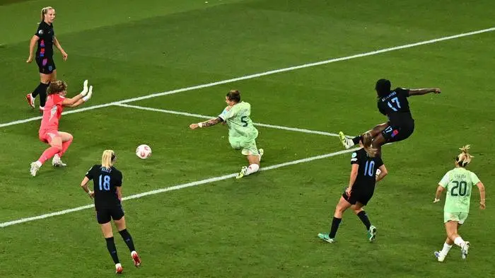 Die „Lionesses“ begannen vor 31.000 Zuschauern in Genf durchaus besser und hatten in der Anfangsphase durch Lauren James (11.) und Alessia Russo (20.) gute Möglichkeiten. Die Italienerinnen taten sich zu Beginn schwer. Doch just mit der ersten guten Offensivaktion brachte Barbara Bonansea ihr Team gleich in Führung (33.). Eine Hereingabe verwertete die 34-jährige Spielerin von Juventus Turin trocken mit links zu ihrem ersten Turniertor. Danach starteten die Engländerinnen wütende Angriffe, James hatte die beste Möglichkeit (38.), scheiterte aber an der starken italienischen Torfrau Laura Giuliani. Mit der italienischen Führung ging es dann in die Pause.