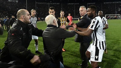 Nächster Skandal bei PAOK Saloniki: Gegen AEK Athen gibt der Schiedsrichter ein Tor aufgrund von vermeintlichem Abseits nicht. PAOK-Präsident Ivan Savvidis stürmt daraufhin bewaffnet das Spielfeld.