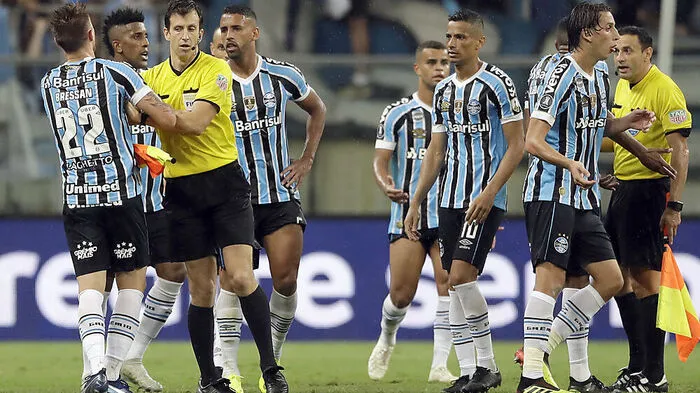 Die Spieler von Gremio Porto Alegre kamen den Unparteiischen zu nahe
