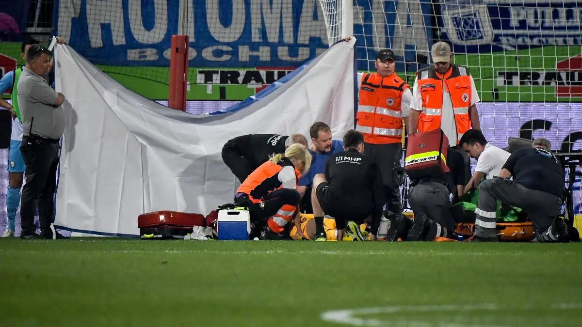 Im Bundesliga-Duell zwischen Heidenheim und Bochum wurde Kevin Müller hart getroffen und fiel bewusstlos zu Boden. Er wurde zehn Minuten behandelt.