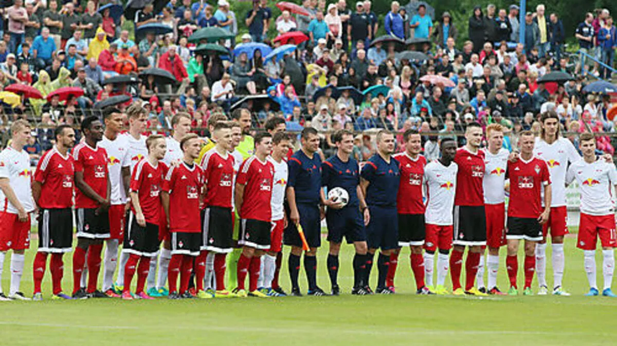Vor dem Testspiel des Bundesliga-Aufsteigers Leipzig beim 1. FC Frankfurt/Oder war spontaner Einsatz notwendig. Spieler und Verantwortliche beider Teams mussten zusammen mit Balljungen das Spielfeld von Schrauben und Steinen reinigen.