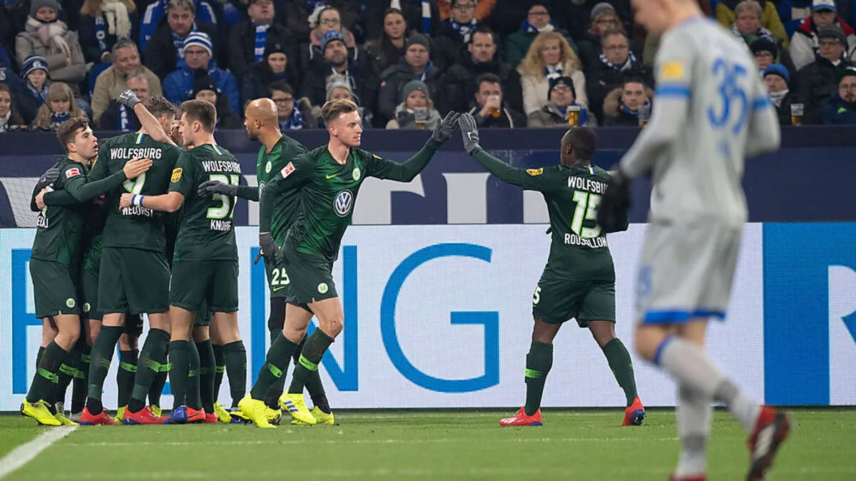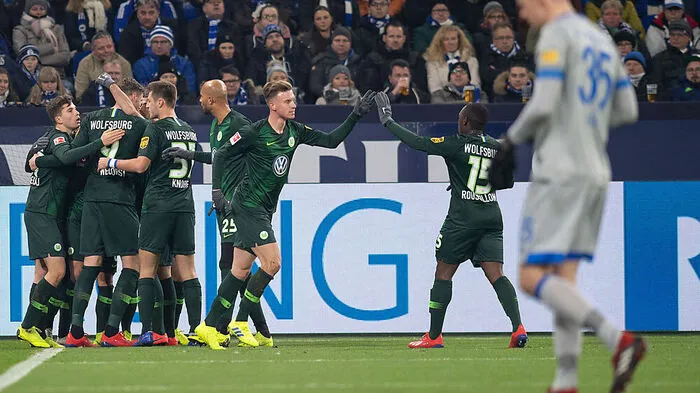 Schalke 04 hat gleich zum Auftakt der Rückrunde der deutschen Fußball-Bundesliga eine Rangverbesserung geschafft. Die Mannschaft von Coach Domenico Tedesco setzte sich am Sonntag zum Abschluss der 18. Runde vor eigenem Publikum dank eines Doppelpacks von Daniel Caligiuri (8., 78.) gegen den sechstplatzierten VfL Wolfsburg 2:1 durch und ist nach dem zweiten Ligasieg in Folge nun Tabellenzwölfter.