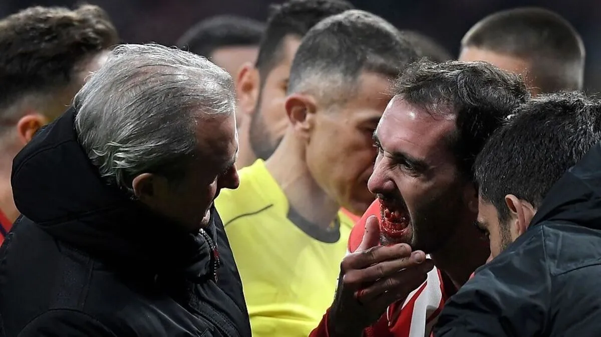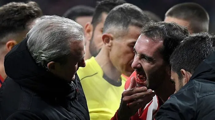 Drei Zähne verlor Innenverteidiger Godin im Duell mit Valencia. Der Torhüter verfehlte mit den Fäusten den Ball, traf Godin aber wunderbar.