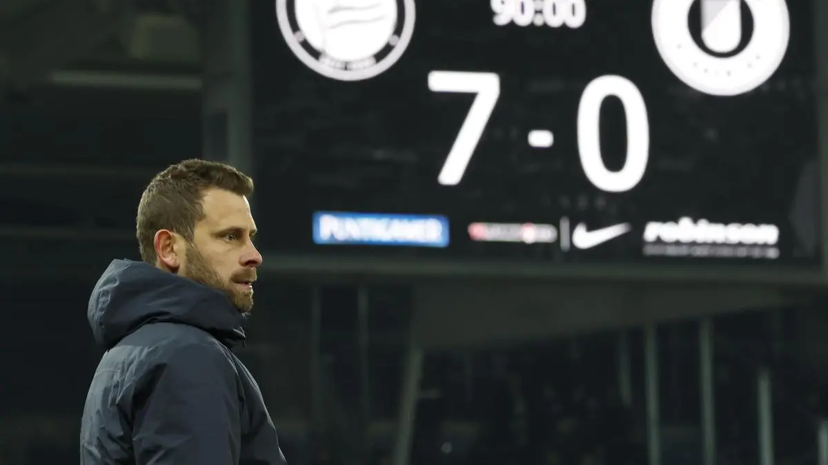 Sturm konnte nach der Pause ein bisschen vom Gas gehen und Energie für das Champions-League-Match am Mittwoch (18.45 Uhr) in Klagenfurt gegen Girona sparen. Der Torhunger war aber noch nicht gestillt. Böving (55.) und Biereth (65.), der zu seinen zwei Treffern auch drei Tore vorbereitete, schnürten den Doppelpack. In der Nachspielzeit (91.) setzte Leon Grgic den Schlusspunkt, womit die aktuelle Sturm-Elf den höchsten Sieg der Grazer in der Bundesliga-Geschichte einstellte. 7:0 hatten Sturm auch schon 1981 (gegen Sportclub), 1997 (gegen Admira) und 2000 (gegen Austria Lustenau) gewonnen.