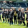 Die LASK-Spieler feierten schon in Trondheim am Rasen