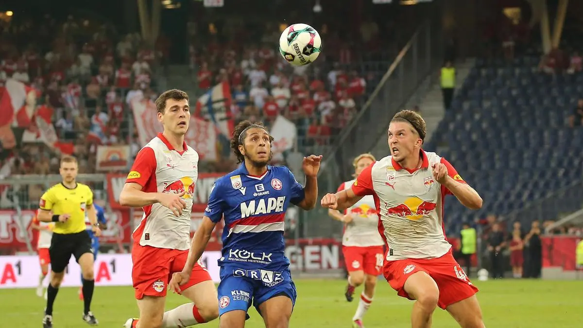 Bis dahin waren die Rotjacken auf rutschigem Geläuf trotz spielerischer Überlegenheit der Salzburger gut im Spiel, in der elften Minute hatte Tio Cipot völlig freistehend die Führung für die Grazer vergeben. Auf der Gegenseite hatten die Bullen, die im Vergleich zum 0:1 gegen Club Brügge unter der Woche im Hinblick auf das Champions-League-Qualifikations-Rückspiel am Dienstag an fünf Positionen verändert angetreten waren, in Person von Adam Daghim schon in Minute sechs die Gelegenheit auf das 1:0. Beres Owusu, der beim GAK in der Innenverteidigung anstelle von Martin Kreuzriegler sein Debüt gab, hatte den Ball aber zur Ecke abgewehrt.