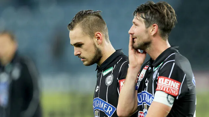 Drei Innenverteidiger stehen heute von Anfang an für Sturm Graz am Spielfeld. Außer Lykogiannis und Koch kein Außenspieler. Sehr viel deutet auf eine flexible Fünfer-Kette hin.
