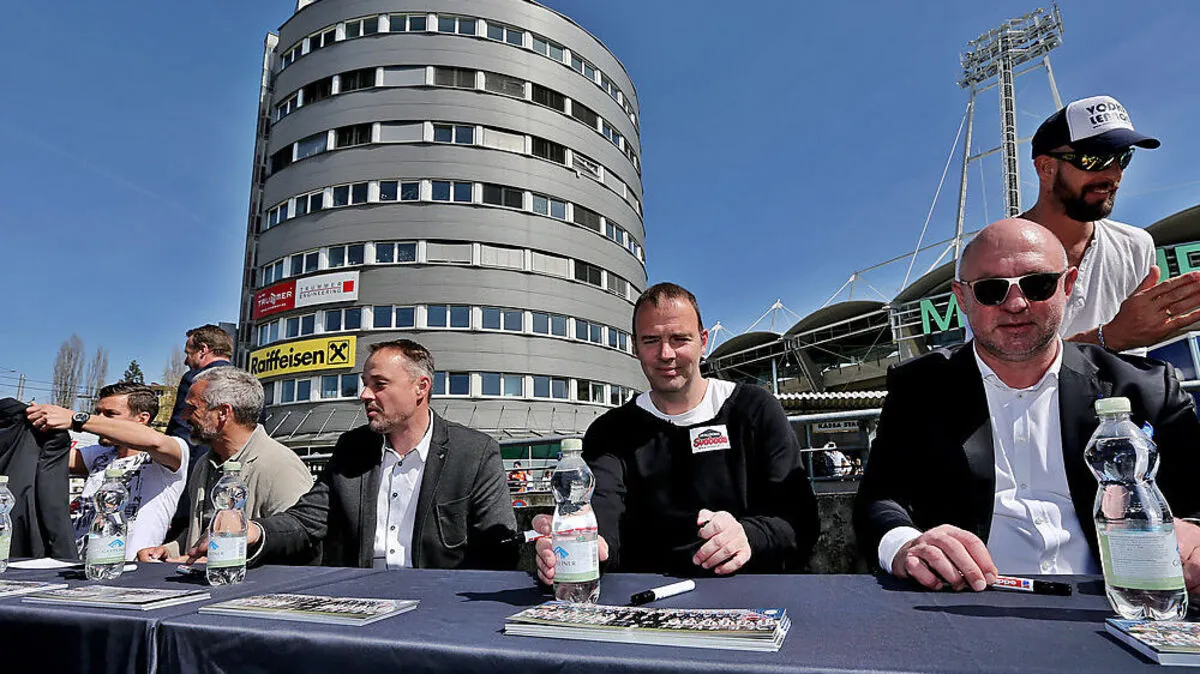 Die Sturm-Meistermannschaft von 1998 hat sich heute zu einem Großteil im Stadion Liebenau eingefunden, um das 20-jährige Jubiläum des ersten Meistertitels zu feiern.