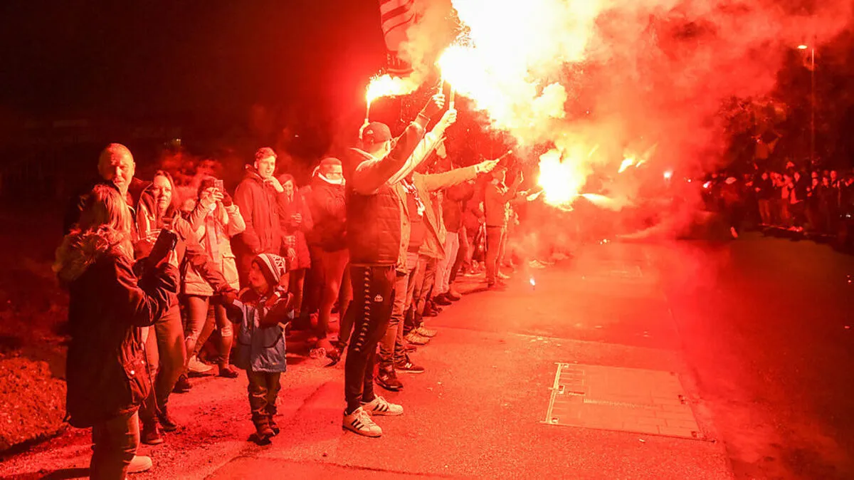 Rapid - Sturm wird eine heiße Partie. Die Sturm-Fans lieferten schon bei der Abreise einen Vorgeschmack