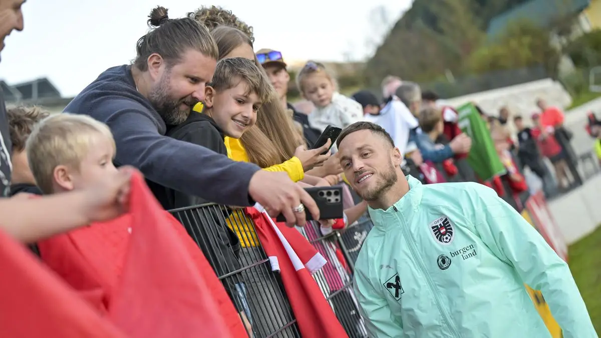 Österreichs Fußball-Nationalteam hat am Montagabend bei strahlendem Sonnenschein in Windischgarsten die Vorbereitungen für das Länderspiel-Doppel in Linz aufgenommen. Beim öffentlichen Training vor knapp 1.000 Zuschauern standen alle 25 Kaderspieler, die Teamchef Ralf Rangnick eingeladen hat, mehr oder weniger intensiv auf dem Platz - darunter auch der erstmals einberufene Venezia-Legionär Michael Svoboda und der nach über zwei Jahren ins Team zurückgekehrte Marco Friedl. Der Großteil der Akteure, die am Sonntag noch im Ligaeinsatz waren, absolvierte ein regeneratives Programm. Bei einer 14-köpfigen Gruppe mit den drei Torhütern Patrick Pentz, Alexander Schlager und Niklas Hedl sowie unter anderen auch Konrad Laimer, Marcel Sabitzer und Christoph Baumgartner ging es schon mehr zur Sache. Nach Abschluss der Einheit schrieben Kapitän Marko Arnautovic und Co. auch noch Autogramme und posierten für Selfies.