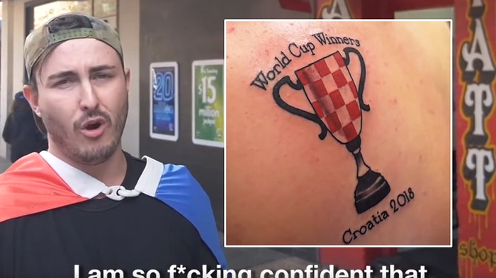 Sein eigenes Orakel verriet ihm den Weltmeister 2018. Der Australier nennt es eine "idiotensichere Methode". Der junge Mann setzte 3000 Dollar und ließ sich tätowieren.